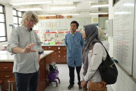 Selain agenda diskusi, Prof. Morrissey juga mengunjungi beberapa laboratorium di lingkungan FTP UGM. Kunjungan ini memberikan gambaran langsung mengenai fasilitas riset yang dimiliki, sekaligus membuka ruang interaksi dengan peneliti dan mahasiswa terkait berbagai topik seperti fermentasi, bioproses, dan pengembangan teknologi pangan berkelanjutan.