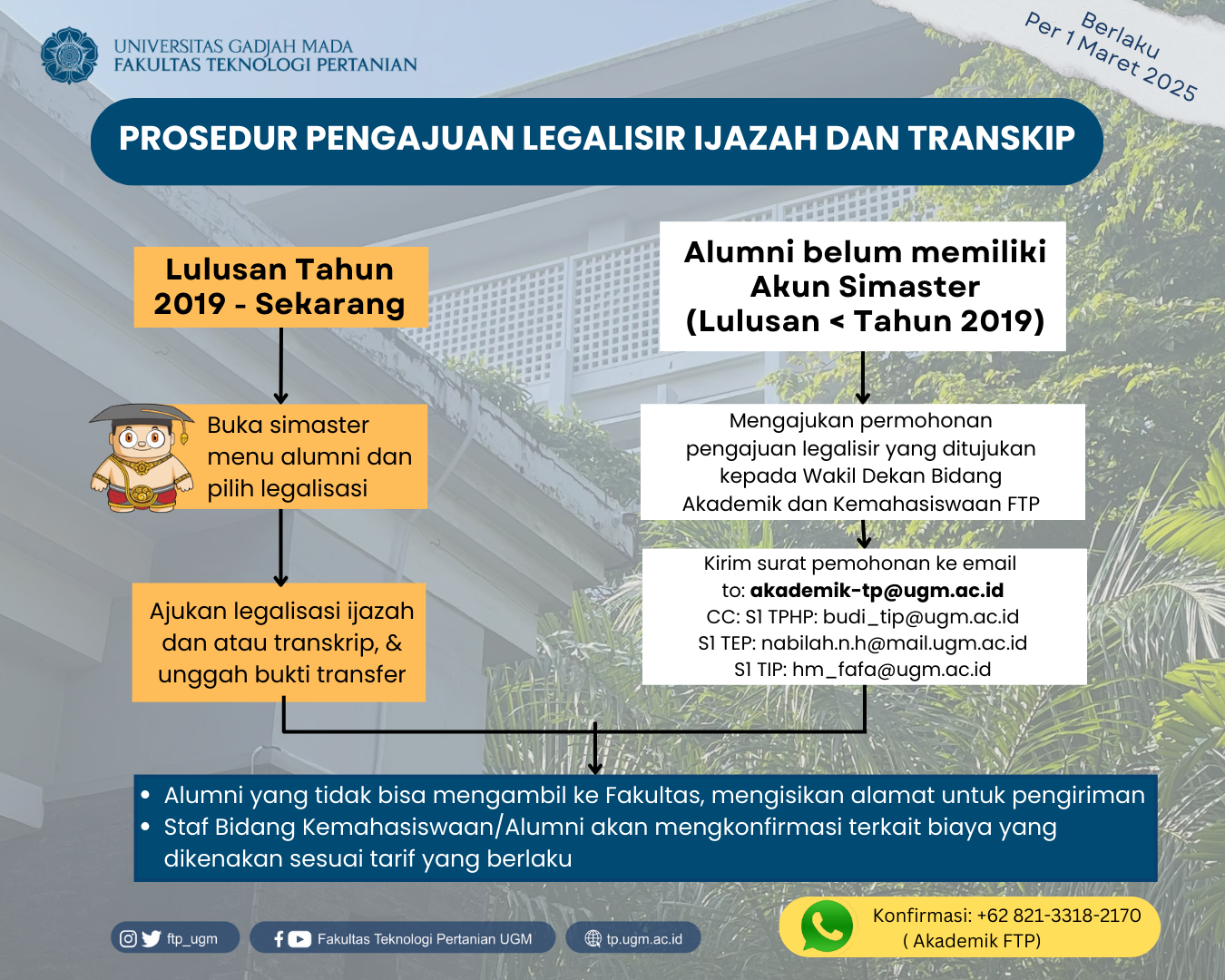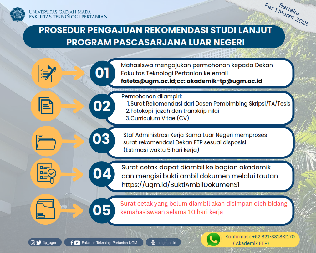 Layanan Alumni 4 Maret 2025, 13.17 Oleh: tik.tp 0 PROSEDUR PENGAJUAN REKOMENDASI STUDI LANJUT PROGRAM PASCASARJANA LUAR NEGERIPROSEDUR PENGAJUAN LEGALISIR IJAZAH DAN TRANSKIP