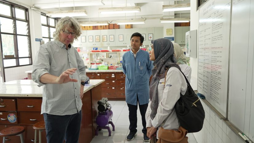 Selain agenda diskusi, Prof. Morrissey juga mengunjungi beberapa laboratorium di lingkungan FTP UGM. Kunjungan ini memberikan gambaran langsung mengenai fasilitas riset yang dimiliki, sekaligus membuka ruang interaksi dengan peneliti dan mahasiswa terkait berbagai topik seperti fermentasi, bioproses, dan pengembangan teknologi pangan berkelanjutan.